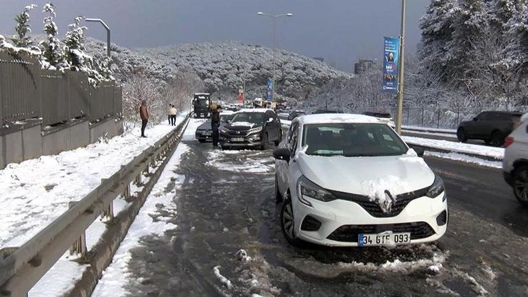 İstanbul'da kar yağışı öğle saatlerinde belli noktalarda etkisini artırdı. TEM Otoyolu Hasdal mevkii yan yolda otomobiller yoğun kar yağışı sonrası ilerlemekte zorlandı. Bazı araçlar yolda kalırken, kar lastiği olmayan araçlardan bazıları ise kaydı.