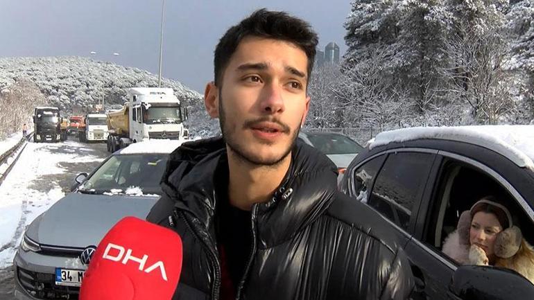 Kerem Arda Yılmaz, "Bir anda kar bastırdı, yolda kaldık. Kenara çekmek zorunda kaldık. Şimdi açıldı gibi. Lastikler yaz lastiği, bir anda vurunca gidemedim. Kaza çok şükür olmadı ama bayağı trafik oldu. Sağa çekti insanlar. Ondan sonra da bir problem kalmadı. Herkes gitsin en son biz gideriz, kaza bela olmasın. Kar küreme aracını bekliyorduk o da geldi" dedi.