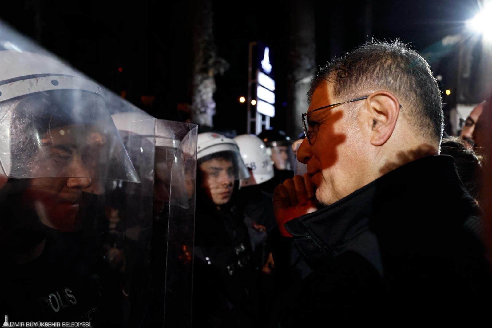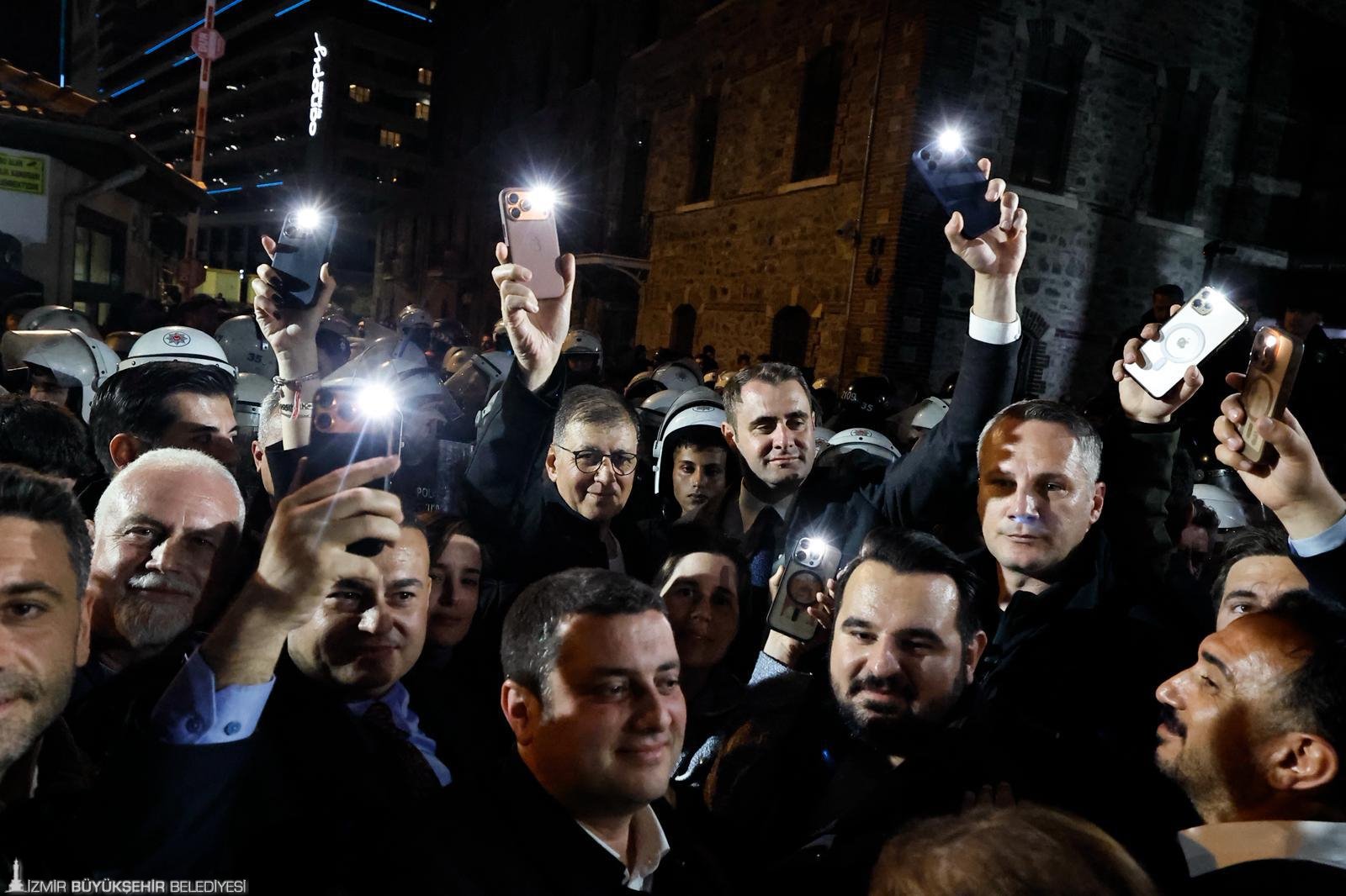 Cemil Tugay bundan sonra bu bina İzmir halkına geri verilene kadar buradadır, burada olacaktır. İçinizi karartmayın” diye konuştu.
