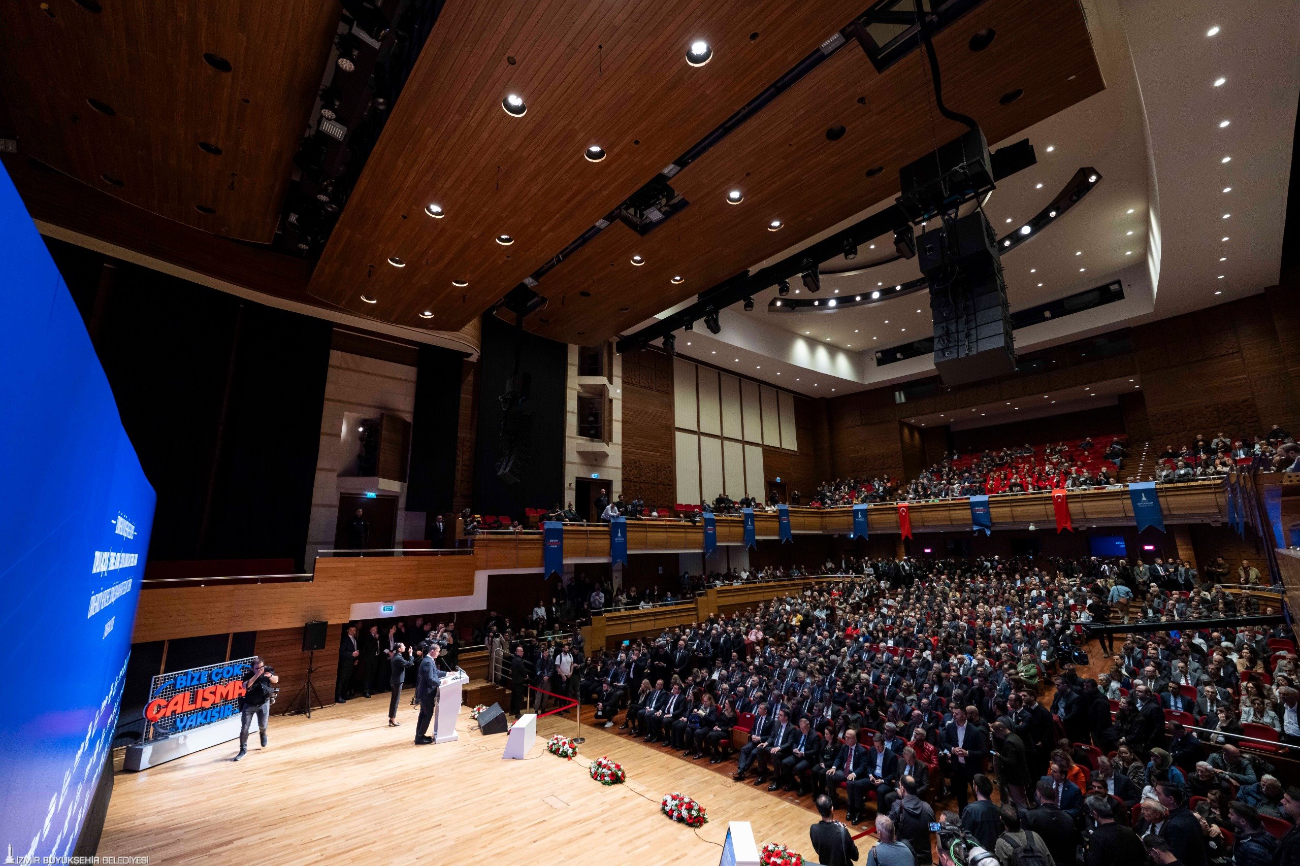 İzmir’e toplam 42,5 milyar liralık yatırım yapıldığını belirten Özel, Buca Metrosu, tramvay alımları ile deniz ve kara ulaşım filolarına kazandırılan yeni araçları, altyapı yatırımlarını, ulaşım projelerini ve su kriziyle mücadele çalışmalarını örnek gösterdi.