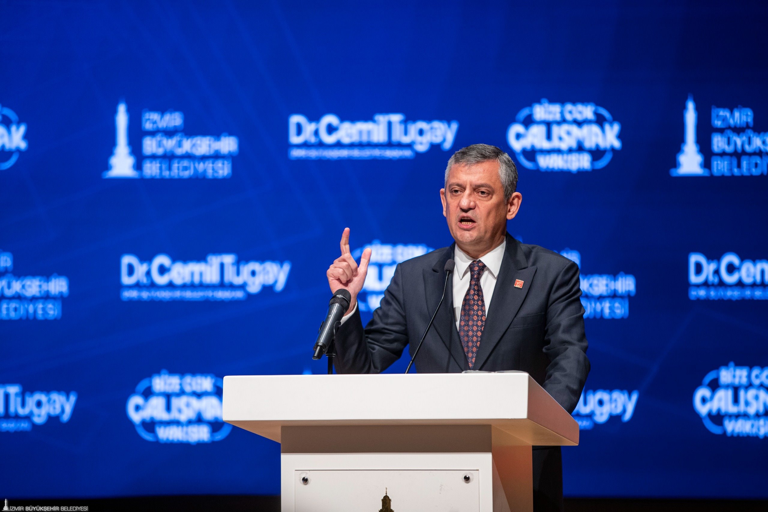 CHP Genel Başkanı Özgür Özel, konuşmasına “Bugün cumhuriyetimizin sarsılmaz kalesi, kurtuluşun ve hürriyetin simgesi güzel İzmir’de olmaktan büyük mutluluk duyuyorum” diyerek başladı.