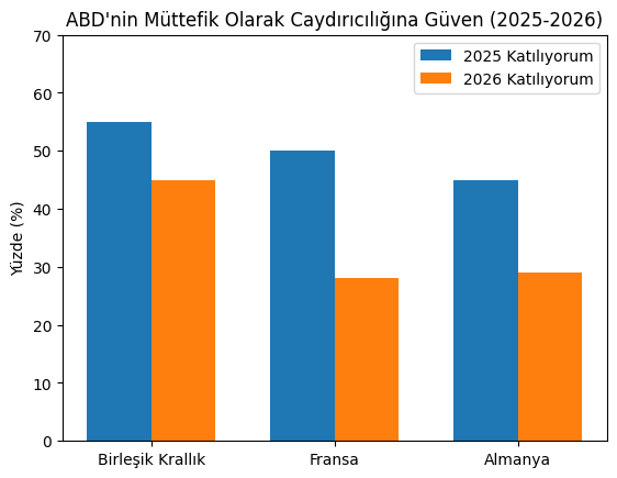 Birleşik Krallık’ta ise yalnızca bir yıl içinde, ABD’yi düşman saldırılarına karşı etkili bir caydırıcı olarak görenlerin oranında yüzde 10’luk keskin bir düşüş yaşandı.