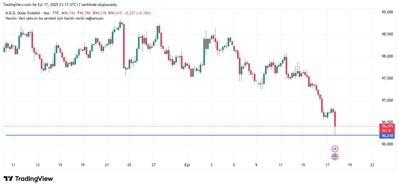 Dolar endeksi ise faiz kararı öncesinde 96,72 puanda hareketleniyordu faiz indiriminin hemen ardından 96,21 puana kadar sert geri çekildi.