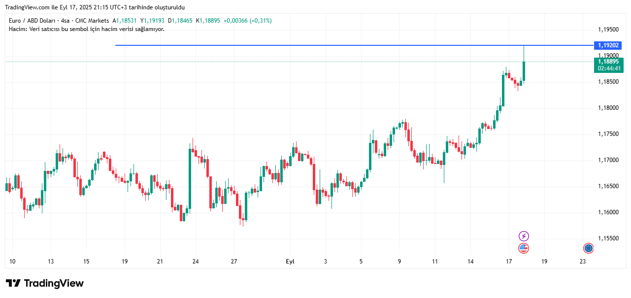 Euro Dolar paritesi ise karar öncesinde 1.18 seviyesi civarında bulunuyordu faiz indiriminin ardından Euro Dolar paritesi 1.19 seviyesine yükseldi