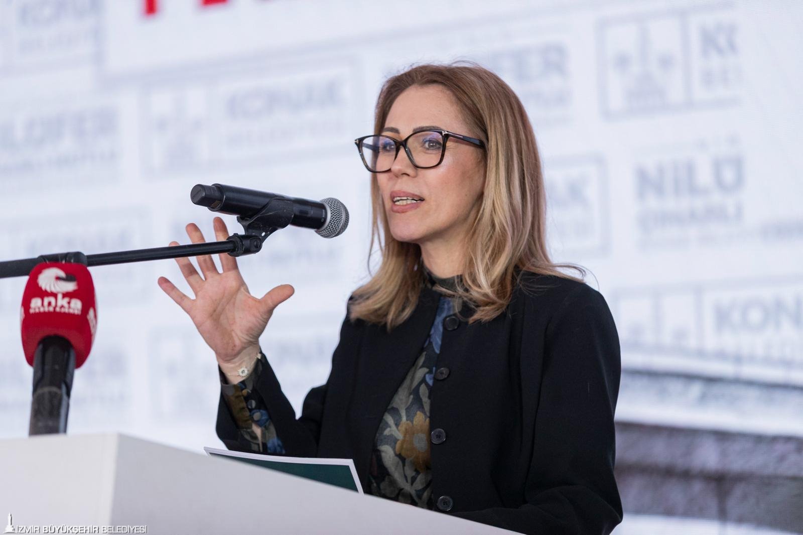 Açılış töreninin ev sahibi Konak Belediye Başkanı Nilüfer Çınarlı Mutlu ise, “Bugün, bu kürsüde konuşmak benim için hiç kolay değil.
