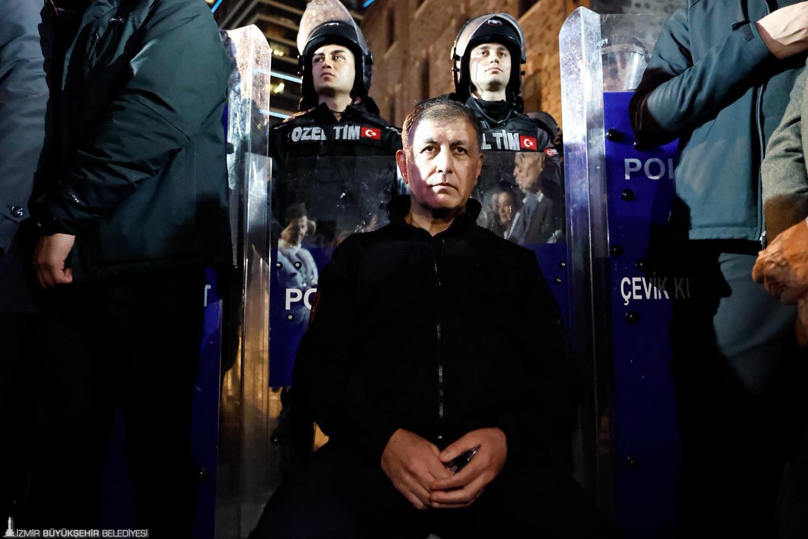 Cemil Tugay bundan sonra bu bina İzmir halkına geri verilene kadar buradadır, burada olacaktır. İçinizi karartmayın” diye konuştu.