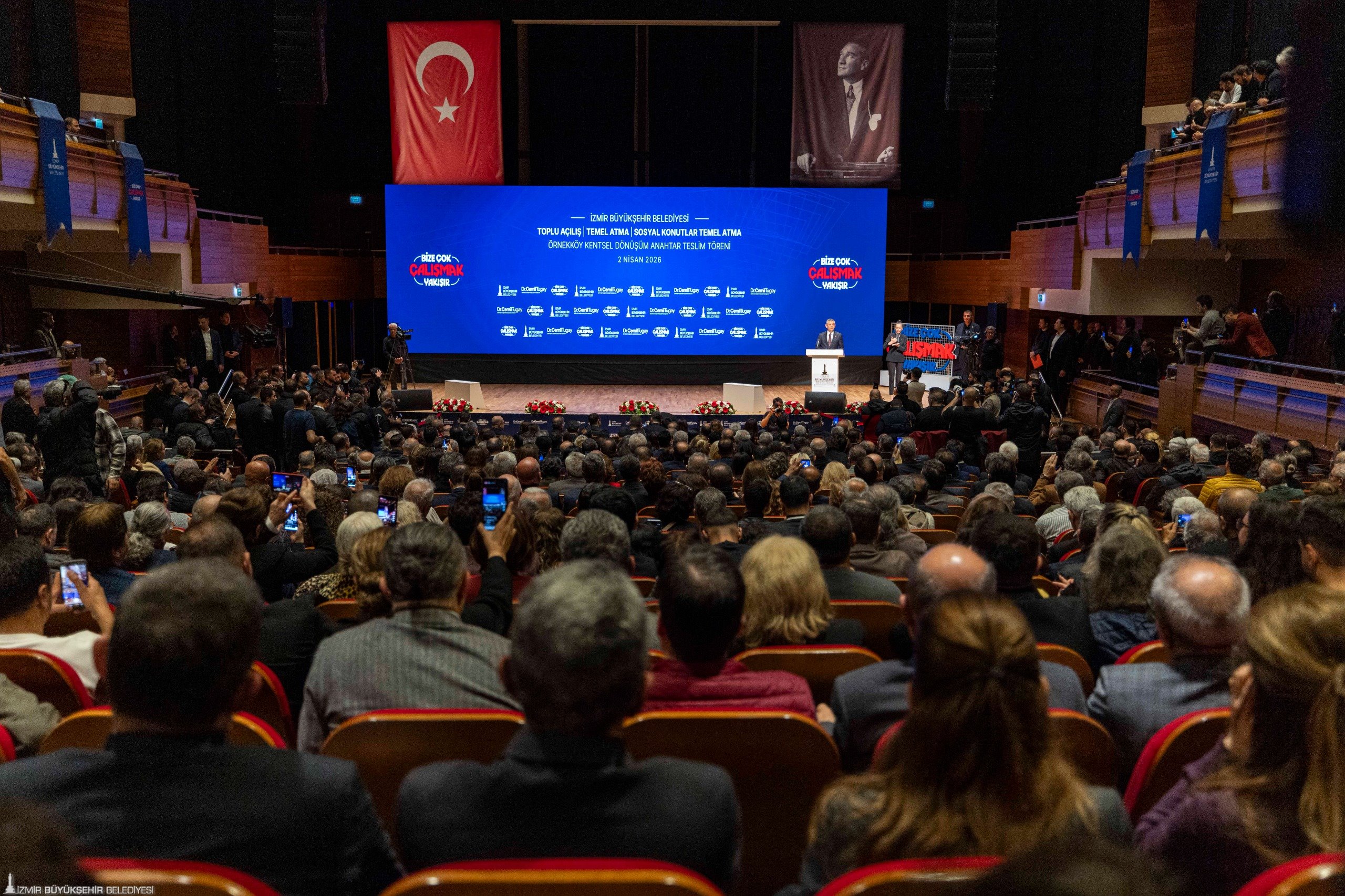 İzmir Büyükşehir Belediyesi’nin kentin dört bir yanında hayata geçirdiği projelerin toplu açılış, temel atma, anahtar teslim töreni Cumhuriyet Halk Partisi Genel Başkanı Özgür Özel’in katılımıyla yapıldı.