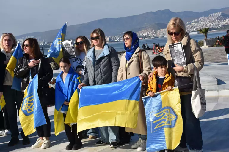 İzmir'de yaşayan Ukraynalılar, Rusya-Ukrayna savaşının 4'üncü yıl dönümünde bir araya gelip, savaşın sona ermesi için 'barış' çağrısı yaptı.