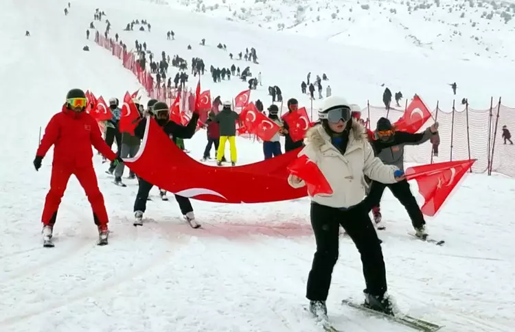 Saygı duruşu ve İstiklal Marşı’nın okunmasıyla başlayan festivalde yamaç paraşütü ve Türk bayraklı kayak gösterisi yapıldı. Davetliler, Norm Ender'in Cumhuriyetin 100’üncü yılı için yazıp bestelediği ‘Parla’ marşını okudu.
