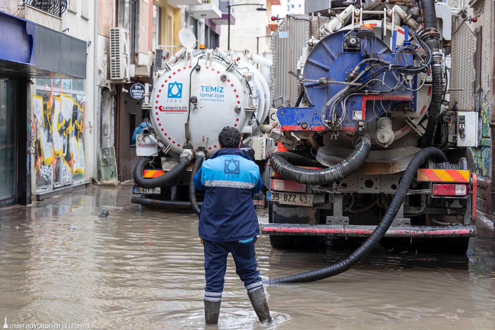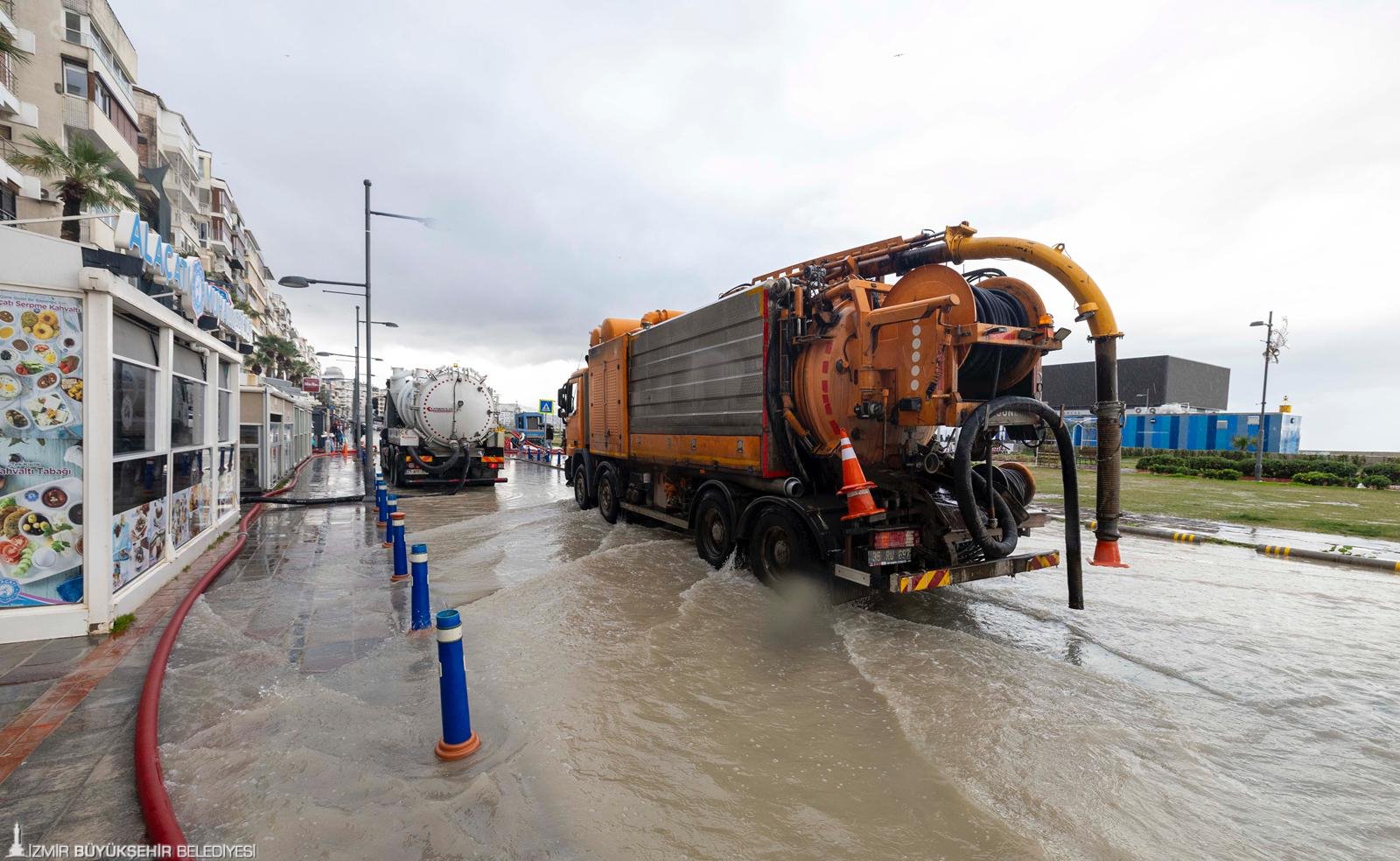 İzmir Büyükşehir Belediyesi ve İZSU ekipleri, Kordon ve Mavişehir başta olmak üzere kıyı hattında 24 saattir aralıksız görev yapıyor. 412 iş makinesi, 200 pompa ve 1365 personel ile müdahale sürdürülüyor.