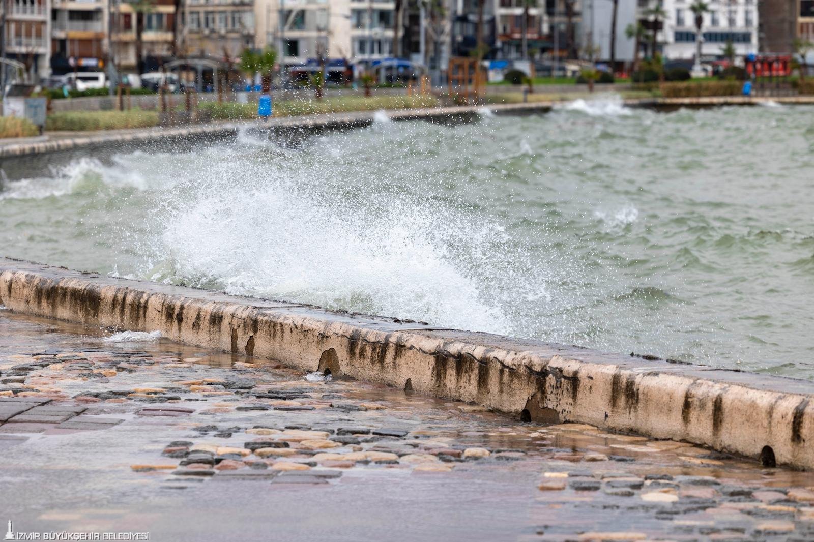 Ege’yi etkisi altına alan düşük basınç sistemi İzmir’de deniz seviyesini 85 santimetreye kadar yükseltti.